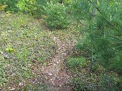 Beavers are best known for their natural trait of building dams in rivers and streams, and building their homes (known as beaver lodges) in the resulting pond. Beaver sign is usually quite obvious as they cause tremendous changes in their environments, from building ponds and lodges, to cutting down even very large trees, to storing young branches in the mud. In the image shown here, beavers have worn a trail through the brush.