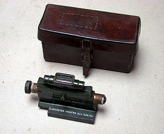 [[File:Vickers Clino R.JPG|thumb|Clinometer designed to enable [[indirect fire]] capability with a [[Vickers machine gun]] circa 1918]] | [[File:Vickers Clino R.JPG|thumb|Clinometer designed to enable [[indirect fire]] capability with a [[Vickers machine gun]] circa 1918]] | ||