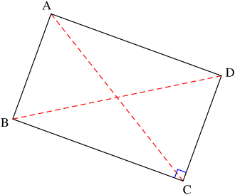 To correct for this, all we need to do is make sure the diagonals in our rectangle are equal length. The diagonals are the imaginary lines connecting A to C and B to D (that is, AC and BD).