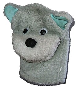 A hand puppet (also called a glove puppet) & is a type of puppet that is controlled by the hand or hands that occupies the interior of the puppet. & Glove puppets are a variation of hand puppets. Rod puppets require one of the puppeteer's hands inside the puppet glove holding a rod which controls the head, and the puppet's body then hangs over most or all of the forearm of the puppeteer, and possibly extends further. Other parts of the puppet may be controlled by different means, e.g., by rods operated by the puppeteer's free hand, or strings or levers pulled from inside the head or body. A smaller variety, simple hand puppets often have no significant manipulable parts at all. Finger puppets are not hand puppets as they are used only on a finger. &