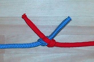 Securing two lines, particularly heavy ropes or decorative purposes.