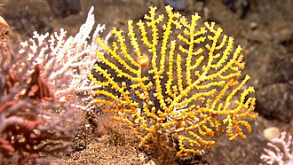 Corals are in the phylum Cnidaria (the C is silent - nigh dare ia). Some forms of Cnidaria are mobile and swim around like jellyfish, other types are sessile which means they are anchored to the substrate and do not move around. These are the corals that build coral reefs.