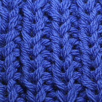 In knitting, ribbing is a pattern in which vertical stripes of stockinette stitch alternate with vertical stripes of reverse stockinette stitch. These two types of stripes may be separated by other stripes in which knit and purl stitches alternate vertically; such plissé stripes add width and depth to ribbing but not more elasticity.