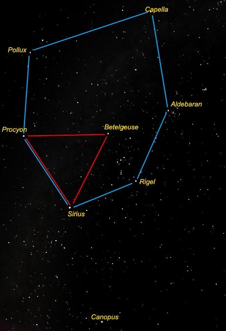 Procyon, Sirius, and Betelguese also form an equilateral triangle.