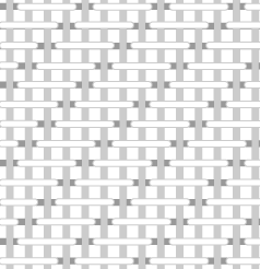 A herringbone weave is made by passing the weft over two warp threads and under the next two. On the next pass the over-under pattern is offset by one so that the weft passes between two warp threads that the previous weft went over.