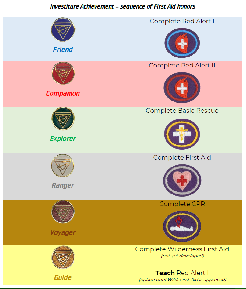Honors in the First Aid series and the Pathfinder classes they correspond with as requirements.