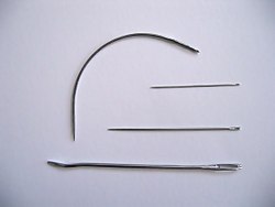Needles are used for piercing a fabric and passing a thread through it for the purpose of making a stitch. This can be done by hand or by machine. A hand needle has a hole in it (called the eye) near its back. A machine needle has its eye near the point.