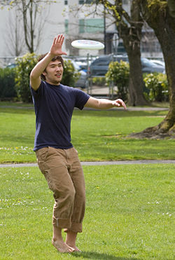 Flying discs (commonly called Frisbees) are disc-shaped objects, which are generally plastic and roughly 20 to 25 centimeters (8–10 inches) in diameter, with a lip. The shape of the disc, an airfoil in cross-section, allows it to fly by generating lift as it moves through the air while rotating. The name Frisbee is a registered trademark of the Wham-O toy company, but is often used generically to describe all flying discs.