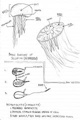 A sketch of the simple external anatomy of a Jellyfish, as well as a sketch of Nematocyst action. prepared for the Porifera and Cnidaria honor.