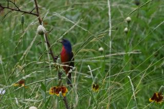 Painted Bunting (Passerina ciris), a colorful bird that eats grass seeds