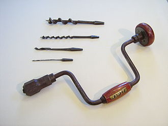 Also called a brace, the drill holds the bit that bores the hole in the tree. Many syrup producers still use these traditional "cordless" tools, though others use battery powered ones instead. A regular "corded" drill is not useful unless the tree is near an outlet. In most maple-producing areas, the trees cover a vast area, and would require thousands of feet of extension cords (which would have to be wound through the forest). It is far,less labor to use a brace and bit than to run wire and then collect it again after the holes are bored.