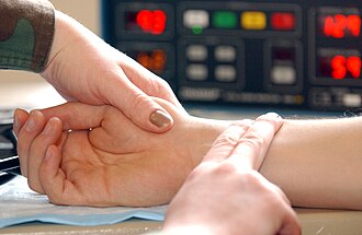below the thumb. Do not use the thumb to take the pulse, as the pulse can be detected in the thumb itself which can interfere with the pulse one is attempting to measure.