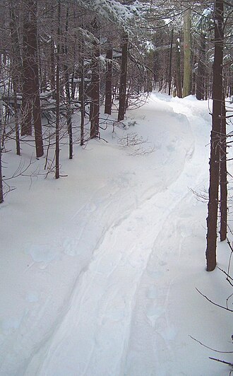 wide. While it may appear after heavy use as if it is possible to "bareboot" or walk it without benefit of snowshoes, this practice is frowned upon by serious snowshoers as it leads to "postholing," or roughening of the trail from places where boots have fallen through (initial appearances to the contrary, the snow in a broken trail is not sufficiently packed to support the more concentrated weight of a foot).