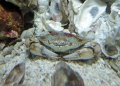 Siri is another word for swimming crabs, in the family Portunidae. The five pairs of limbs in crabs are referred to as pereopods. The first pair are the chelipeds, or claws. The next four pair are designed for locomotion. In walking crabs, all four pair are similar, ending in points and used for walking. In swimming crabs (siri), the last pair is flattened and oar-like, allowing the crabs to move through the water. Swimming crabs are found in many marine environments around the world, often in near shore areas with sandy bottoms. Walking crabs are found in both sandy and rocky areas offshore and onshore.
