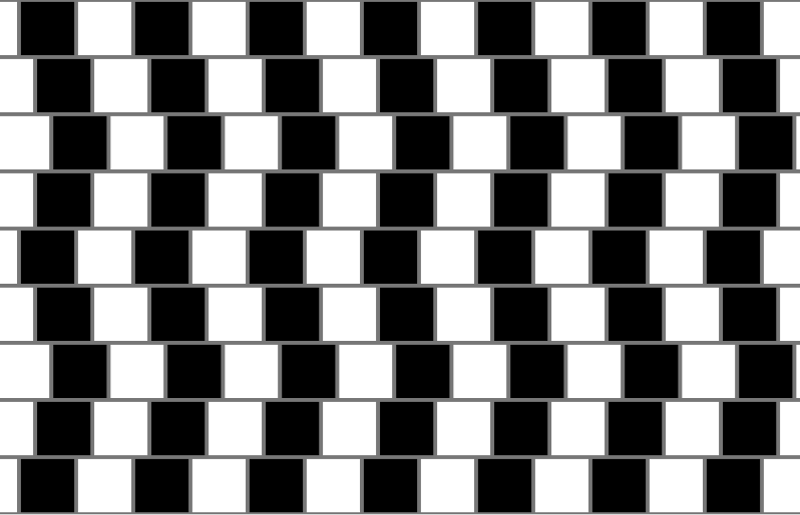 {{Information| |Description={{en|en:Café wall illusion: the horizontal lines are parallel, even if they seem otherwise.}} {{es|Ilusión de la pared del café: las líneas horizontales son paralelas, aunque no lo parezcan.}} |Source=Own work. |Date=