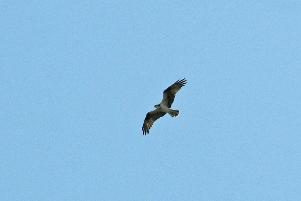Western Osprey (Pandion haliaetus) [Note characteristic bent wing position] Image taken in Austin, Texas, March 2012 Order Accipitriformes, Family Pandionidae [Image: R. Baker]