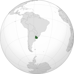 Globe terrestre avec l'Uruguay en vert.
